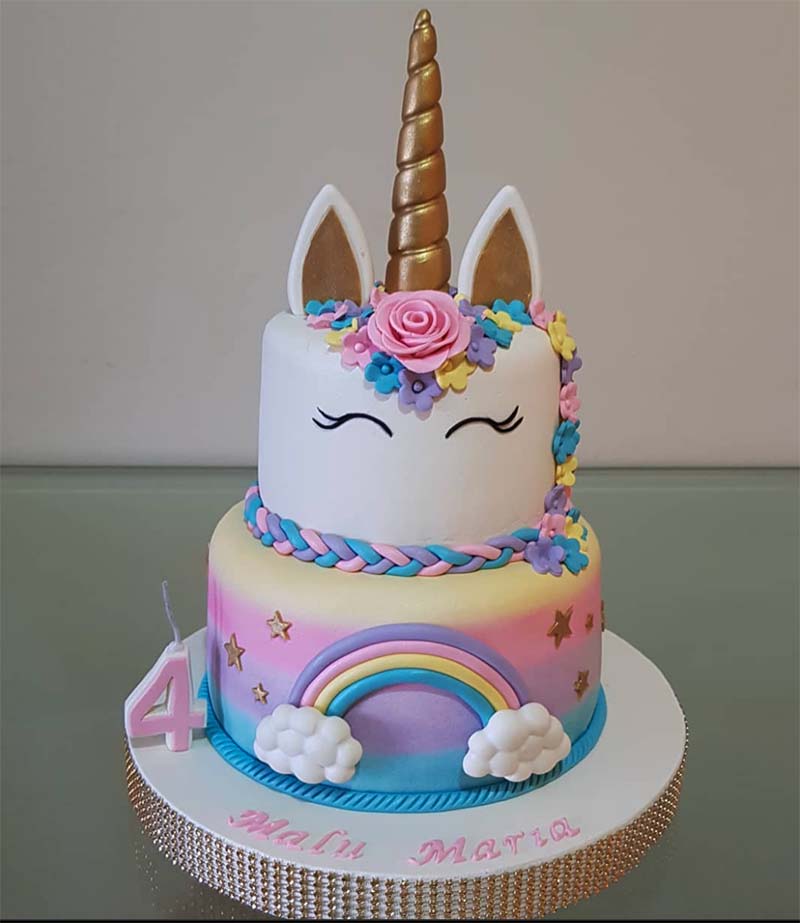Most little girls go through the unicorn phase, dreaming of riding through rainbows on the back of a pink-and-white unicorn. If you’re stressed out about how to make such a cake, we’ve got you covered. This themed cake requires three main components to make it magical: rainbow sprinkles or colours, gold dust or paint, and a horn for the unicorn’s head. Everything else can be as simple or detailed as you want it to be.