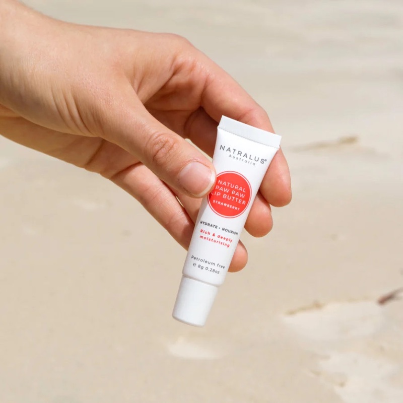 Alternatively, we love Natralus natural paw paw lip butter, made with organic paw paw, shea butter and vitamin E to nourish, hydrate and protect your lips, while giving them a hint of natural shine.