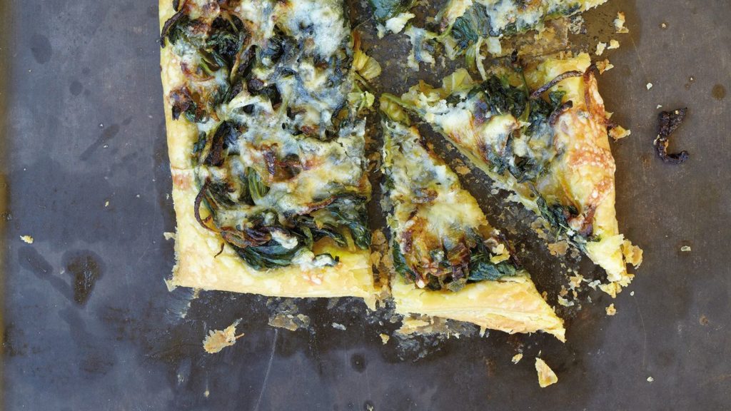 A super-simple vegetarian tart made using puff pasty, spinach and onion that even the children will love.